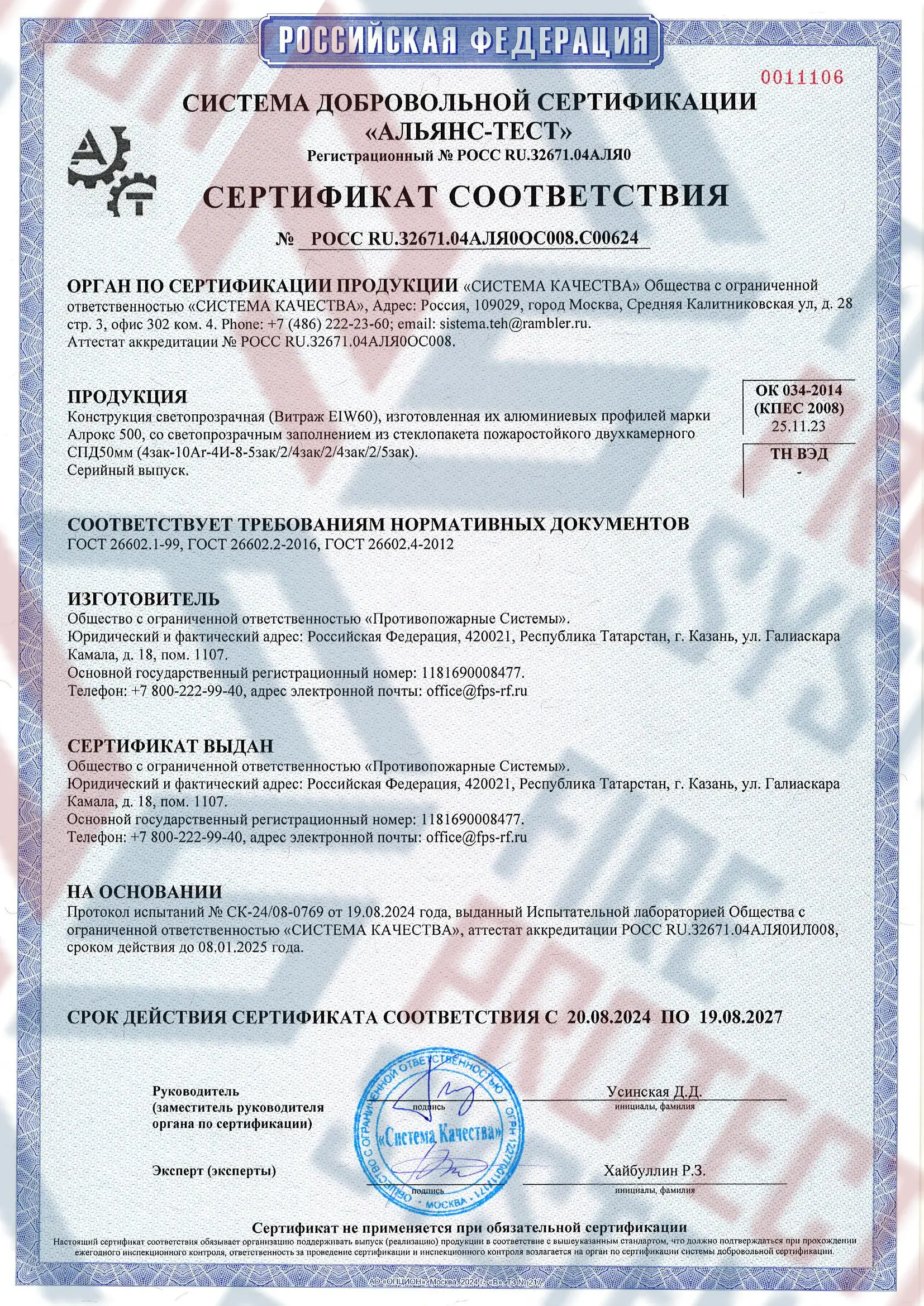 Повышенная огнестойкость (EIW 60) — эффективно сдерживают пламя, дым и тепловое излучение в течение 60 минут.